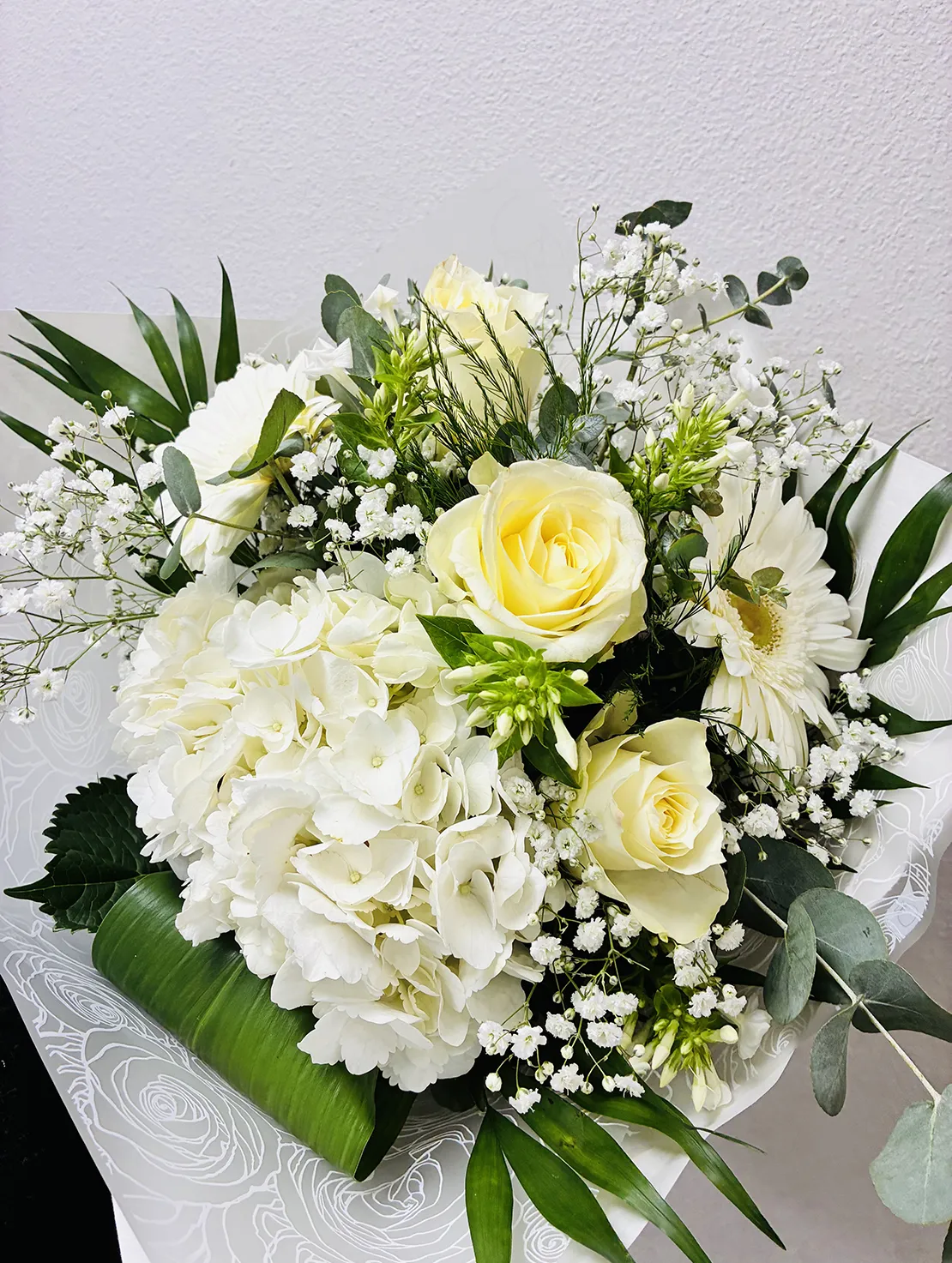 Votre bouquet, composé de fleurs fraîches, pourra être quelque peu différent du visuel présenté qui a valeur indicative. Votre composition, créée spécialement pour vous est susceptible de varier légèrement en fonction de la saisonnalité des fleurs qui la composent.